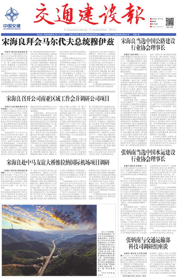 本报讯(通讯员 张昭流晶 谢楠)1月8日,中交集团董事长宋海良在马尔代夫首都马累拜会马尔代夫总统穆伊兹,双方围绕落实两国元首重要共识,持续深化共建“一带一路”,加强在绿色能源、蓝色经济、智慧基建、...