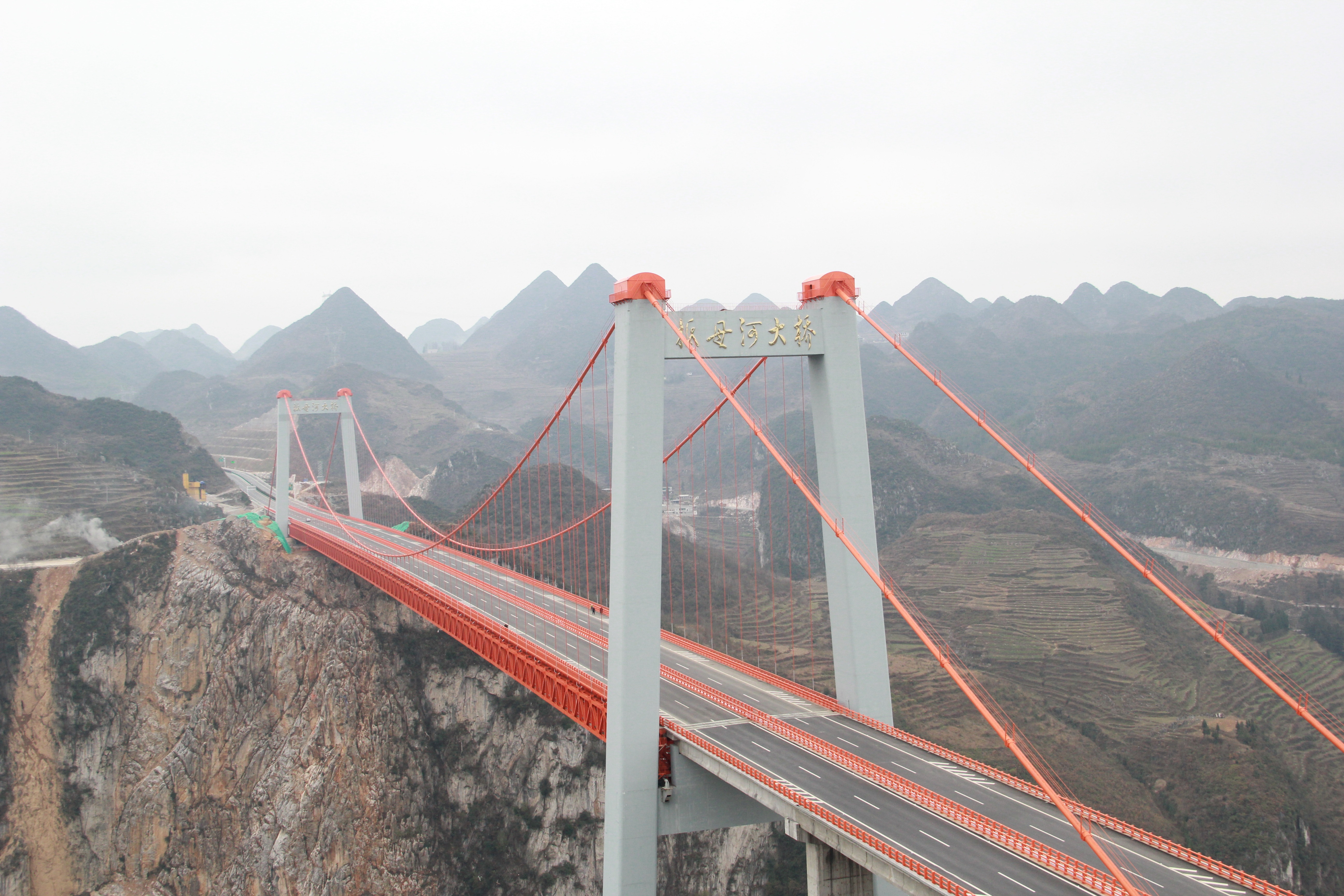2015年12月26日,杭州至瑞丽高速公路贵州境毕节至都格(黔滇界)段建成通车,二公局承建抵母河特大桥主桥为主跨径538米的单跨钢桁梁悬索桥,是毕都高速的三座特大桥之一。 申阳 赵亭亭 摄影报道