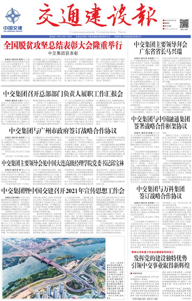 3月2日,中国交建党委常委、副总裁周静波在广州拜会了广东省交通运输厅党组书记、厅长李静,就落实双方主要领导达成的共识,深化务实合作进行座谈交流。周静波表示,希望双方建立更加全面深入的合作关系,在城市互联互通、跨江跨海通道、轨道交通等领域深化合作,实现合作共赢。李静表示,希望中交集团充分发挥全产业链优势,积极参与交通规划设计、城际轨道、港产城融合等领域项目建设,促进广东交通事业高质量发展。