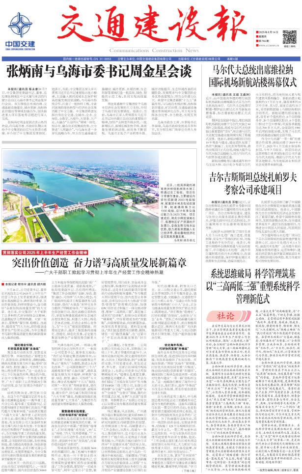 海外业务差异化优势为公司抢抓全球机遇、促进国际国内双向赋能、双向奔赴提供了先发优势。宋海良强调:“围绕‘优海外’要增量,打好优先优质协同发展‘升维战’,推动国内国际资源要素‘双循环’,确保国际工程承包商亚洲第一的绝对优势与建设‘一带一路’的标杆企业。”这一战略指引激发了海外中交人的斗志,他们表示,海外“升维战”不仅是业务拓展,更是价值创造的全球化实践。