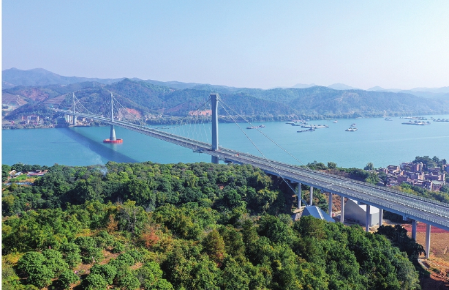 近日,二航局、一公局集团、中交路建参建的广西苍梧至容县高速公路建成通车。苍容高速北起梧州市苍梧县,南至玉林市容县,全长约105.31公里,按照双向4车道高速公路标准建设,设计时速120公里。其中,中交集团承建标段长约31.27公里,控制性工程苍容浔江大桥全长1688米,是目前世界最大跨径独柱式三塔空间缆悬索桥,也是国内首座主跨超500米的三塔空间缆悬索桥。苍容高速的通车,进一步完善了广西高速公路网络布局,提升区域互联互通水平,有力促进北部湾经济区与珠江—西江经济带协同发展。黄清航 张俊飞 申学康 摄影报道
