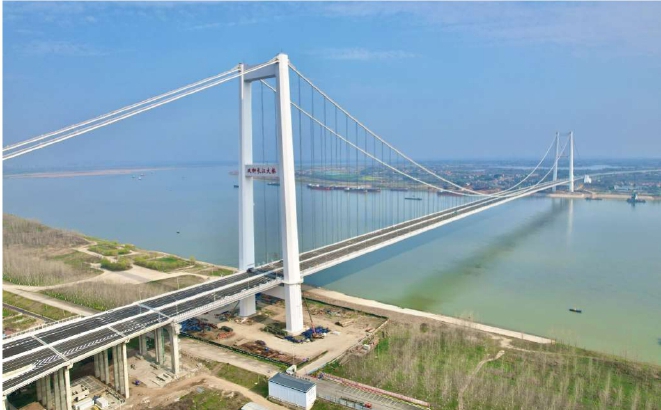 近日,二航局承建的新港高速公路武汉双柳长江大桥建成通车。大桥主跨1430米,桥面宽50.5米,是目前长江上最宽的钢箱梁悬索桥,被誉为武汉东大门“第一桥”。大桥的通车,大幅压缩了区域通行时间,有效串联了武汉阳逻港、鄂州花湖机场等重要枢纽,为武汉都市圈协同发展提供坚实交通保障。许豹 黄子珅 摄影报道