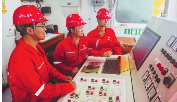 近日,二航局一公司船舶分公司组织开展“砺技强基向海图强”船员技能专项培训。各船舶机舱骨干为青年船员讲解船舶关键设备系统原理、操作、应急处置等关键内容,提升青年船员业务能力水平。图为航工半潜驳3号大管轮吴立琼为船员讲解一体化压载水系统操作要点和注意事项。 熊梦根 摄影报道