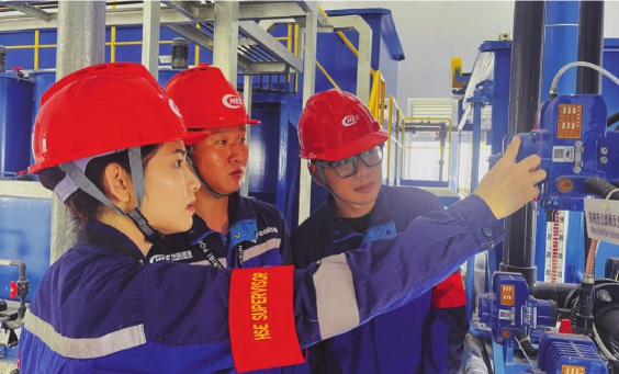 近日,中国港湾承建、四航局实施的喀麦隆克里比深水港二期项目开展“人人节能、全员环保”行动,号召项目员工立足岗位、注重细节,以具体行动践行绿色低碳理念,由HSE部门牵头对克里比深水港二期工业污水处理站的废机油收集、预处理及分离等关键环节进行检查,切实提升环保设施的规范化管理水平。图为项目部员工在现场核查设备运行情况。 郝若萱 摄影报道