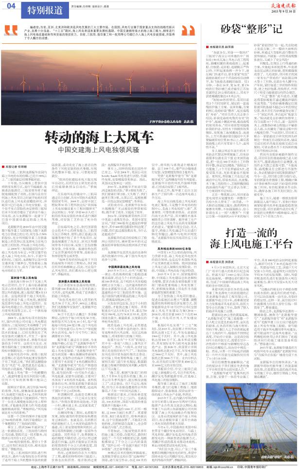 东海风电的中标,使得三航局此前精心打造的风电起重安装船终于有了用武之地。“我们把这艘船命名为‘风范’号,意思就是打造海上风电的示范基地。 ”季振祥说。