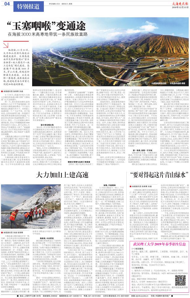 如今,白雪皑皑的大力加山间桥隧相连,蔚为壮观,新种植的乔灌木与原生态环境早已融为一体。