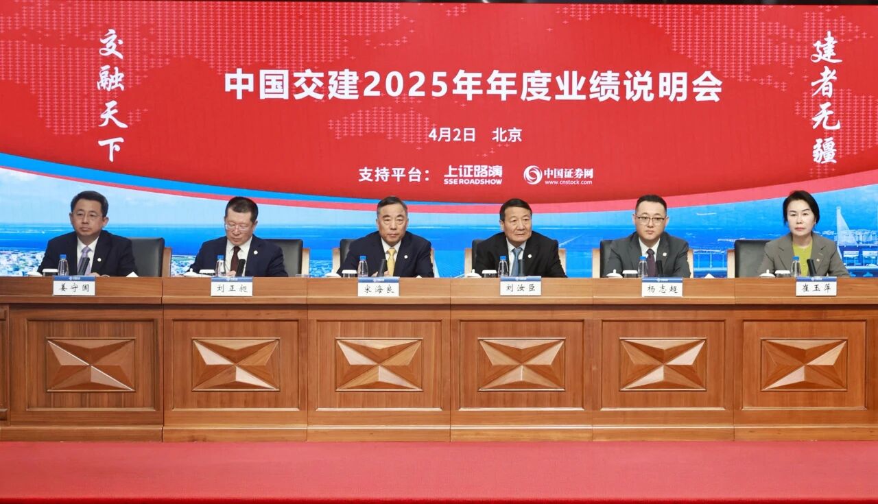 4月2日,中国交建2025年年度业绩说明会在中交大厦召开,与境内外投资者围绕2025年经营形势、业务转型升级进展、“十五五”主要经营目标及分红政策等核心关切问题进行深入交流。公司执行董事、董事长宋海良出席会议并与投资者互动。