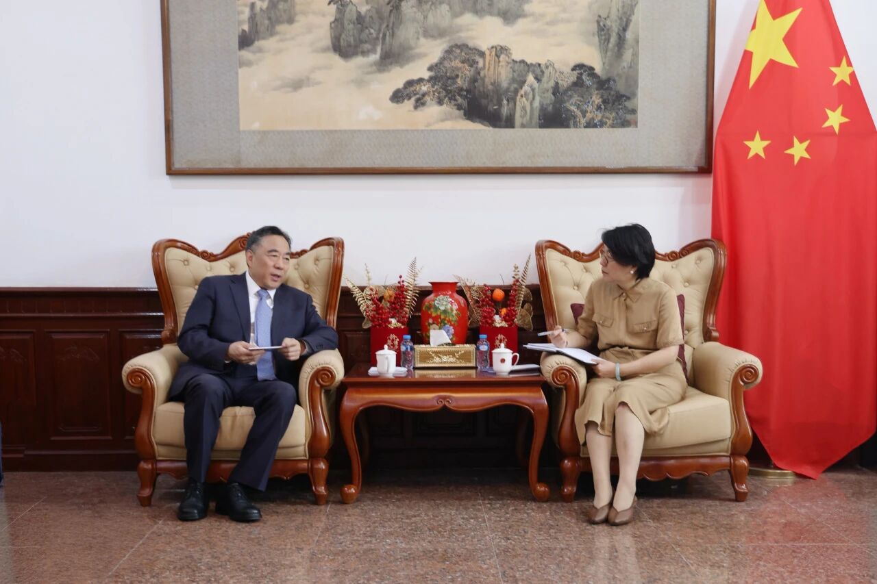 4月8日,中交集团党委书记、董事长宋海良在万象拜会中国驻老挝大使方虹。双方围绕落实中老两党两国领导人重要共识,深化共建“一带一路”合作,服务老挝“十五”规划,加强双方在区域互联互通、绿色低碳转型、数智基建赋能、城市基础设施升级、民生工程建设等领域务实合作进行深入交流。